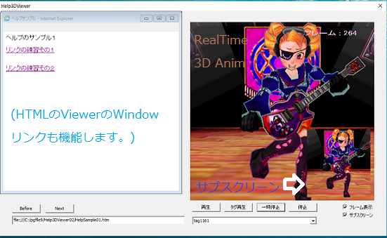 Help3DViewerはHTMLのブラウザとリアルタイム3Dアニメ表示を組み合わせたものです。